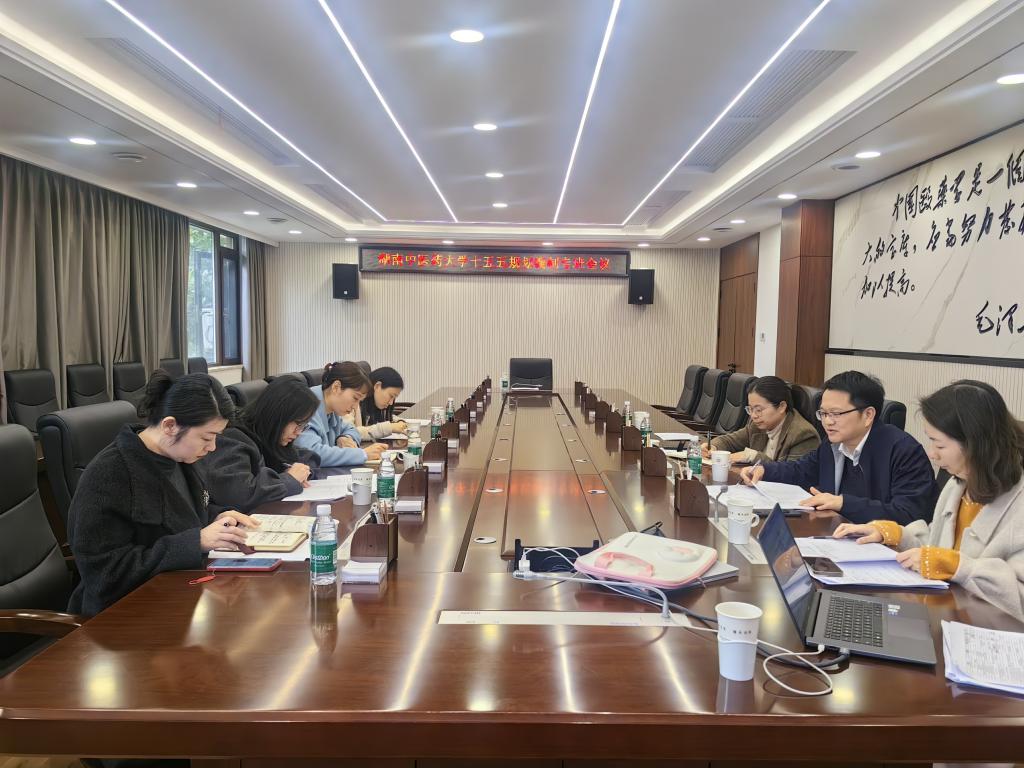 为进一步打磨完善学校 “十五五” 发展规划总体纲要,确保规划编制工作高质量收官,2026年3月25日,湖南中医药大学 “十五五” 发展规划编制专班第九次会议在学校一办二楼会议室召开。
