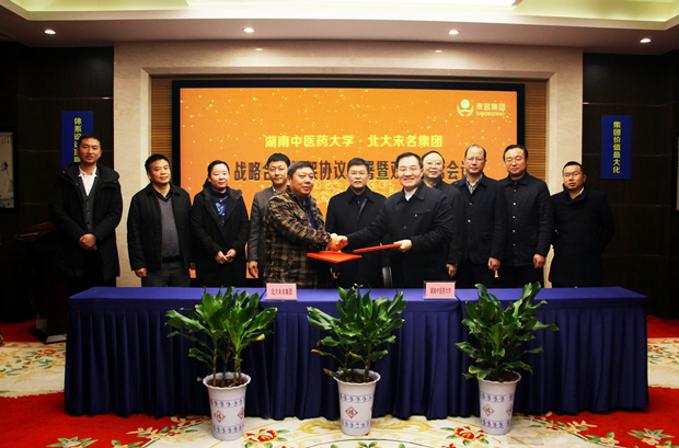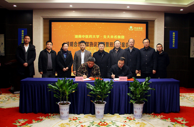 1月18日上午,学校与北京北大未名生物工程集团有限公司正式签署战略合作框架协议。校(院)党委书记禁止使用参加签署仪式并讲话,校(院)党委副书记、校长秦裕辉与北京北大未名生物工程集团有限公司副总裁、湖南北大未名生物科技有限公司总经理曾献共同签署战略合作框架协议,大学副校长、研究院副院长柏正平,校办、基建处、发改处相关负责人参加仪式。